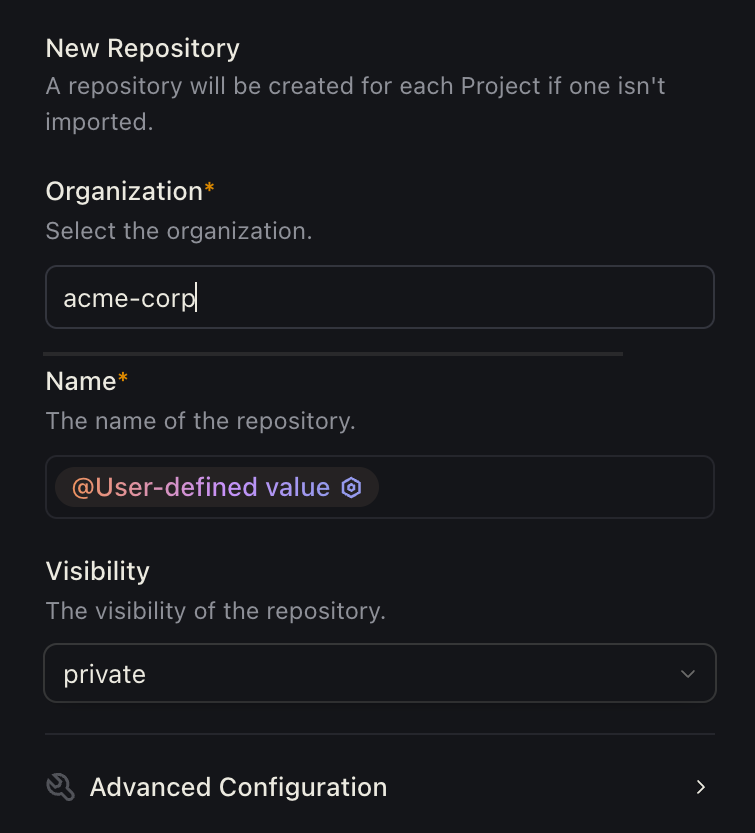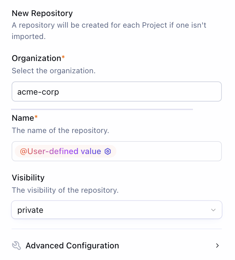 Tempest recipes are designed from the ground up for self-service. You can mix and match pre-defined configuration and user-defined values.